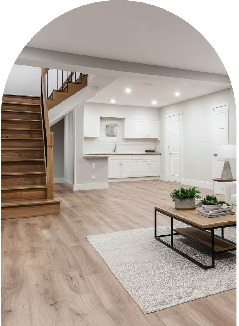Create a functional living space, entertainment room, or rental suite with our custom basement solutions.